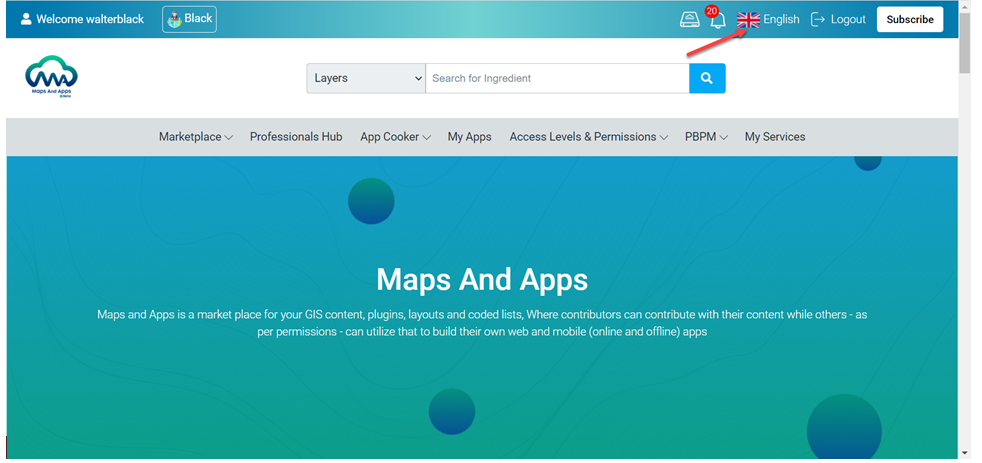 At the top left of your page click on English > choose from the drop-down list the language that you want.
