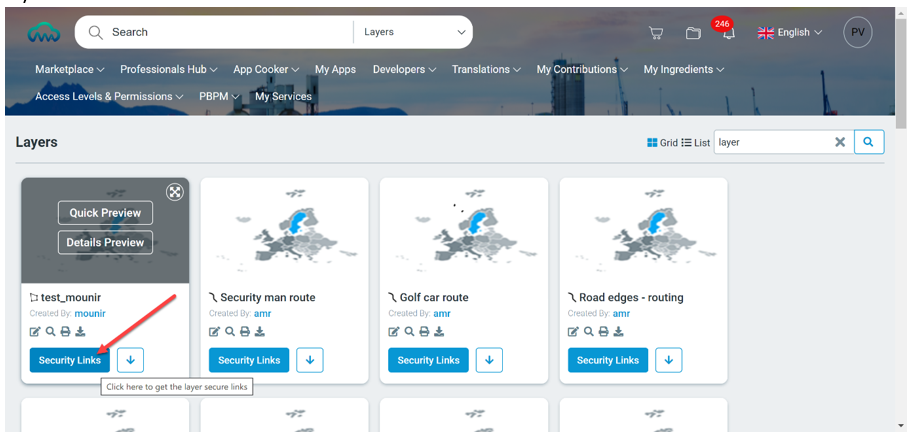 After on-boarding a new layer you can get OGC secured links for your layers for each role that can work on QGIS desktop client, ArcGIS desktop client and your customized developed mobile and web application or any other OGC compliant client.